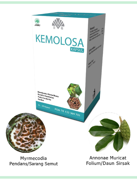 KEMOLOSA KAPSUL diformulasikan khusus untuk membantu memelihara kondisi kesehatan pada penderita kanker. Dengan kandungan Annonae Muricata Folium (Daun Sirsak) dan Myrmecodia Pendans (Sarang Semut), KEMOLOSA adalah pilihan tepat untuk mendukung perjalanan kesehatan Anda.